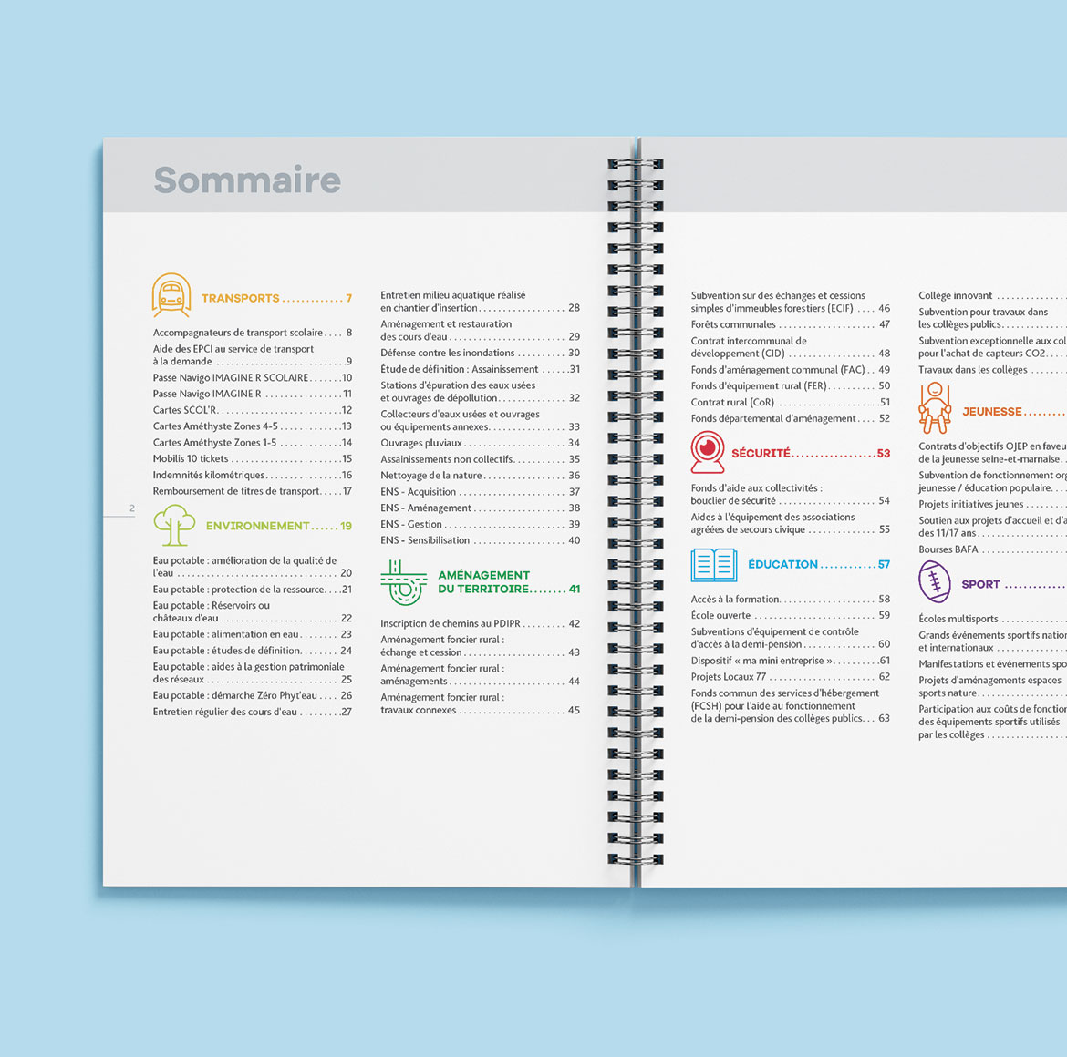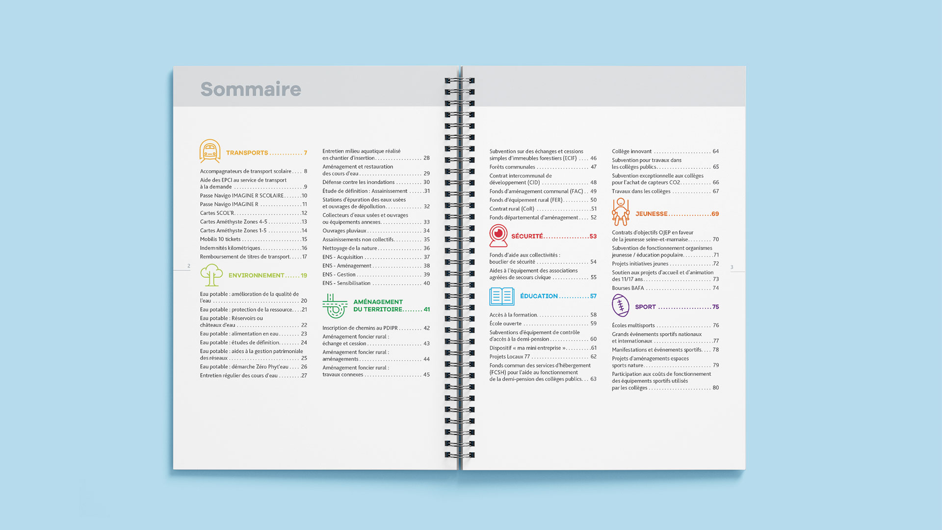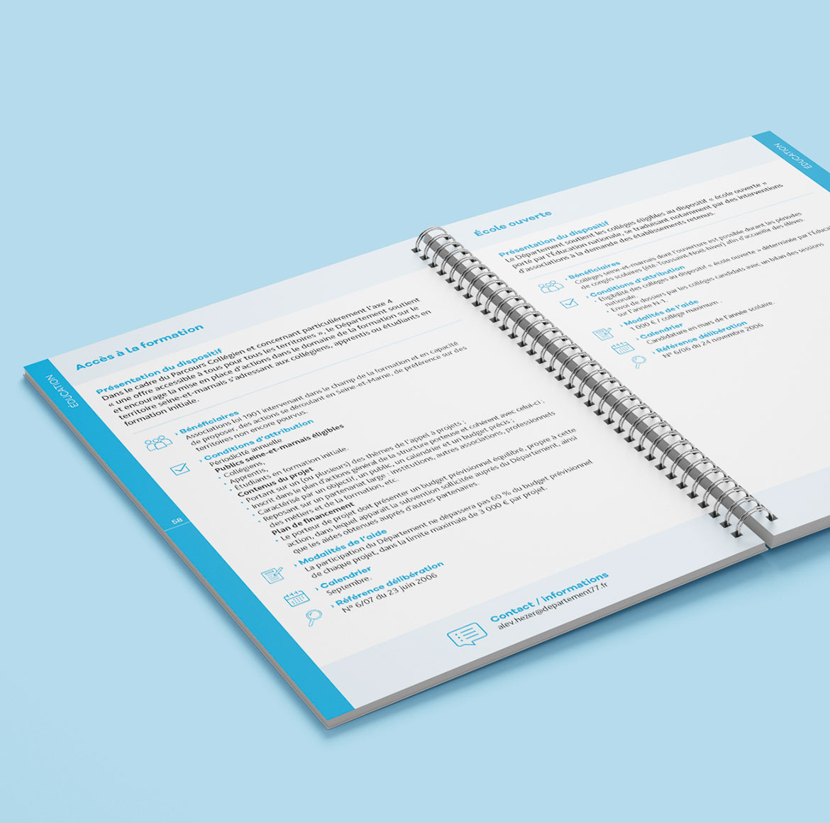 Conception graphique d'un guide pour le Département de Seine et Marne d'une centaine de pages.