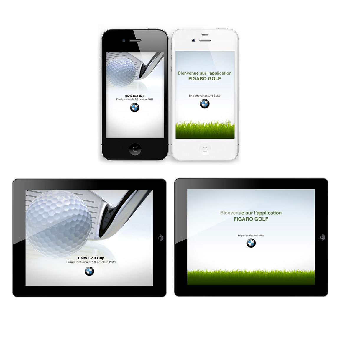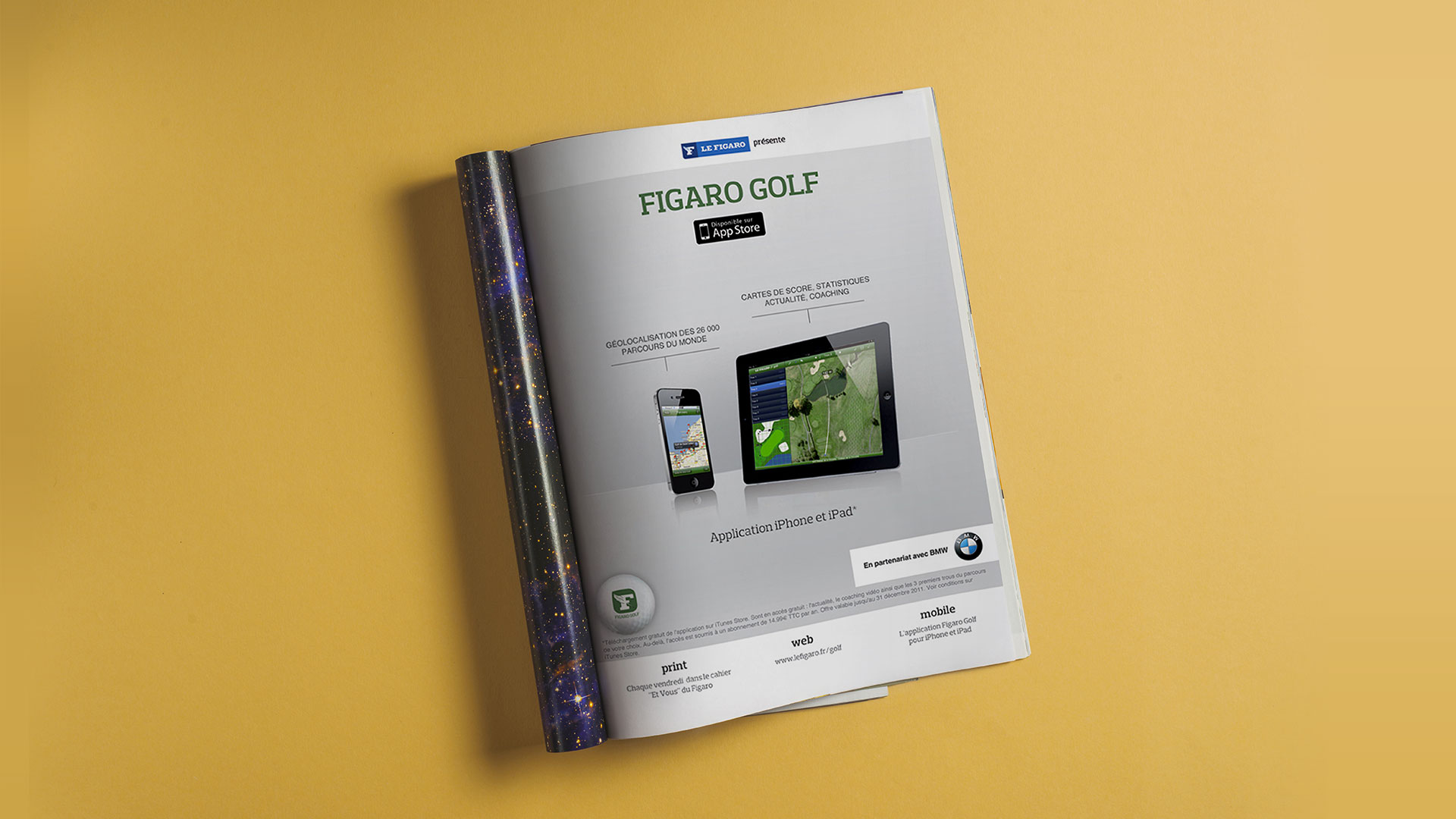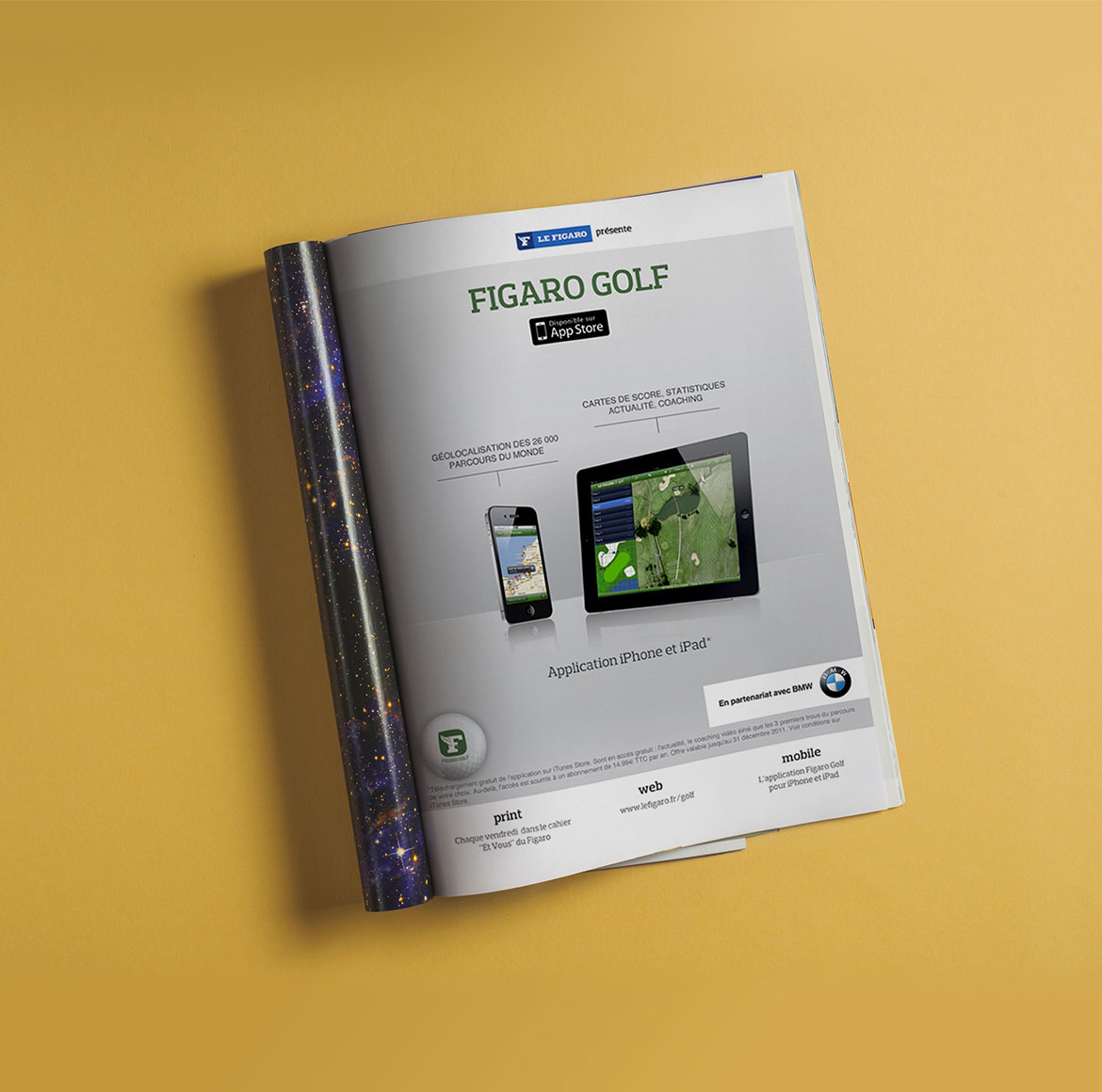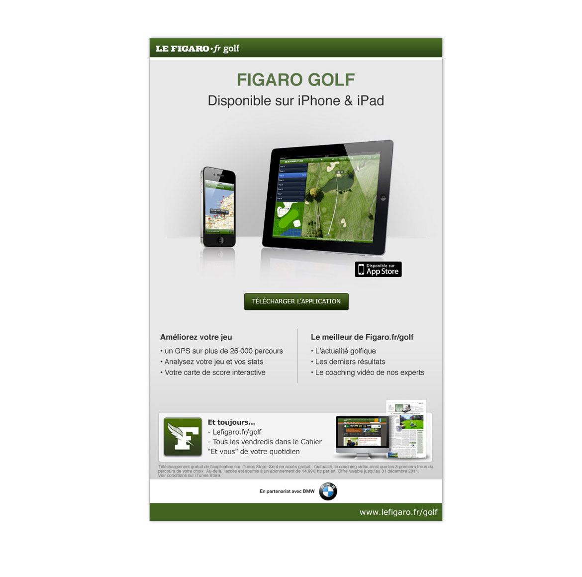 Conception graphique d'interstitiels et d'annonces presse pour la sortie de l'application Figaro Golf.